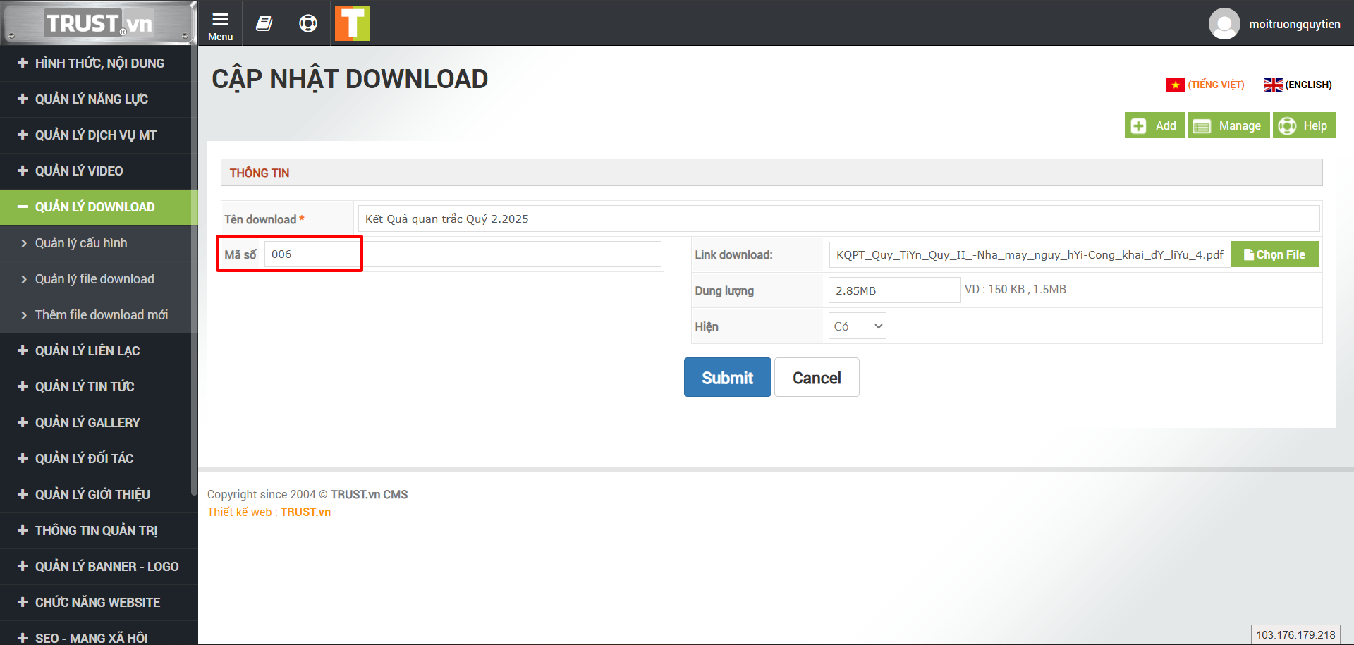 Kết quả quan trắc Quý 2.2025